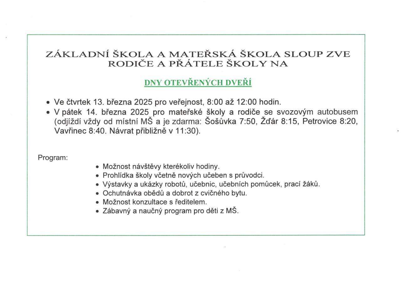 Dny otevřených dveří v ZŠ Sloup, Dny otevřených dveří v ZŠ Sloup.