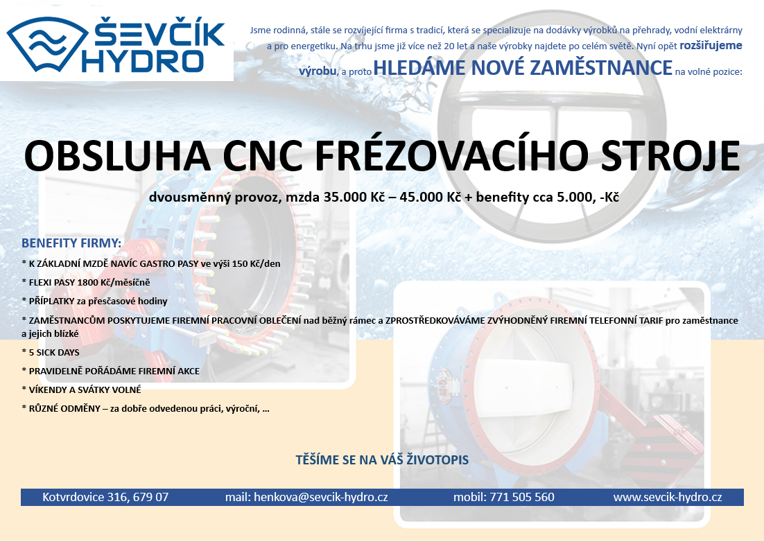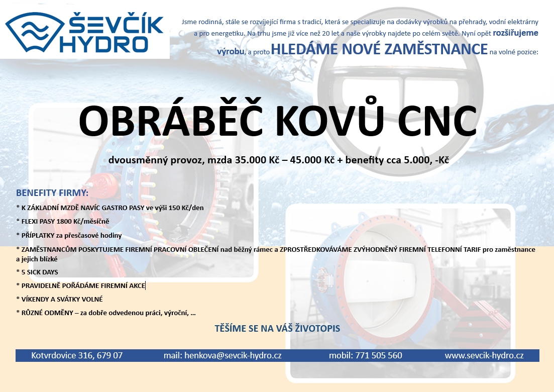 Nabídka pracovních příležitostí, Ševčík HYDRO s.r.o.